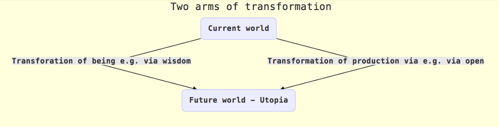 Having purpose and direction. I shared the two arms of transformation: of the material economy (of production through openness etc) and the “being” economy (through wisdom and true open-mindedness).