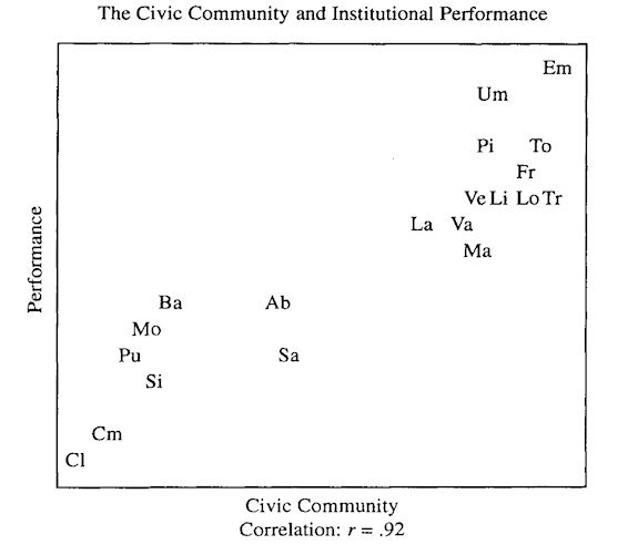 There was a strong correlation between civic participation and institutional performance.