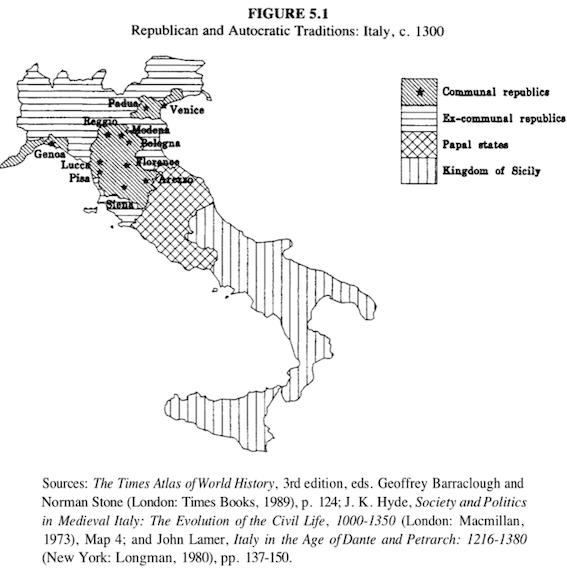 • The heartland of republicanism, those communes which had retained republican institutions into the fourteenth century; and