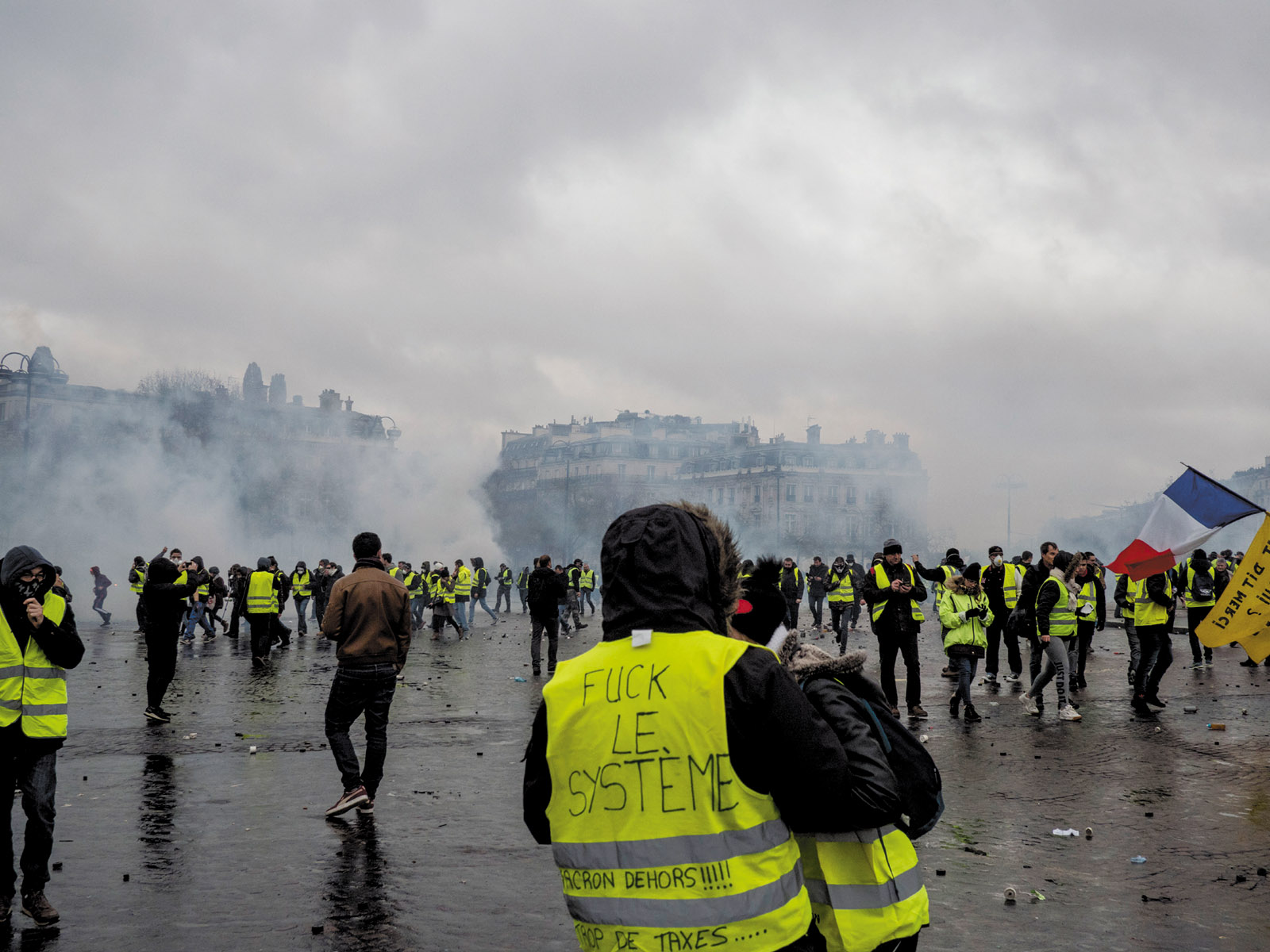 Many have said that the gilets jaunes are merely another “populist movement,” although the term is now so broad that it is nearly meaningless. Comparisons have been made to the Britain of Brexit, the United States of Donald Trump, and especially the Italy of Cinque Stelle. But the crucial difference is that the gilets jaunes are apolitical, and militantly so. They have no official platform, no leadership hierarchy, and no reliable communications. Everyone can speak for the movement, and yet no one can. When a small faction within it fielded a list of candidates for the upcoming European parliamentary elections in May, their sharpest opposition came from within: to many gilets jaunes, the ten who had put their names forward—among them a nurse, a truck driver, and an accountant—were traitors to the cause, having dared to replicate the elite that the rest of the movement disdains.