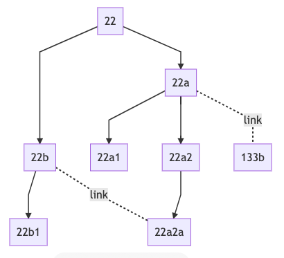 - IDs are written on the notes to indicate back links and forward links, resulting in a linear branch (or branches) of notes. The ‘children’ of the ‘parent’ note will all back link to it.