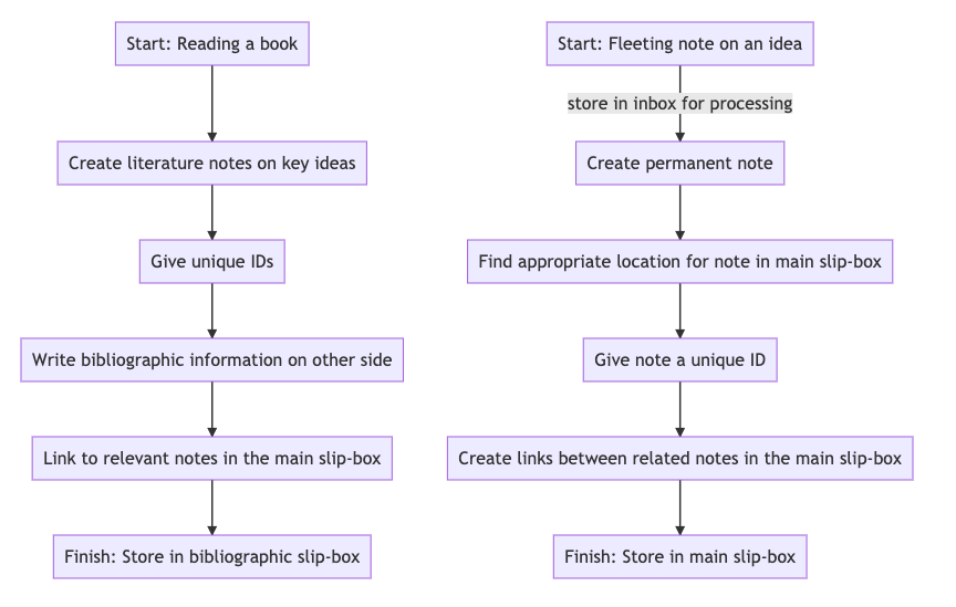 - Linked to relevant notes in the main slip-box.